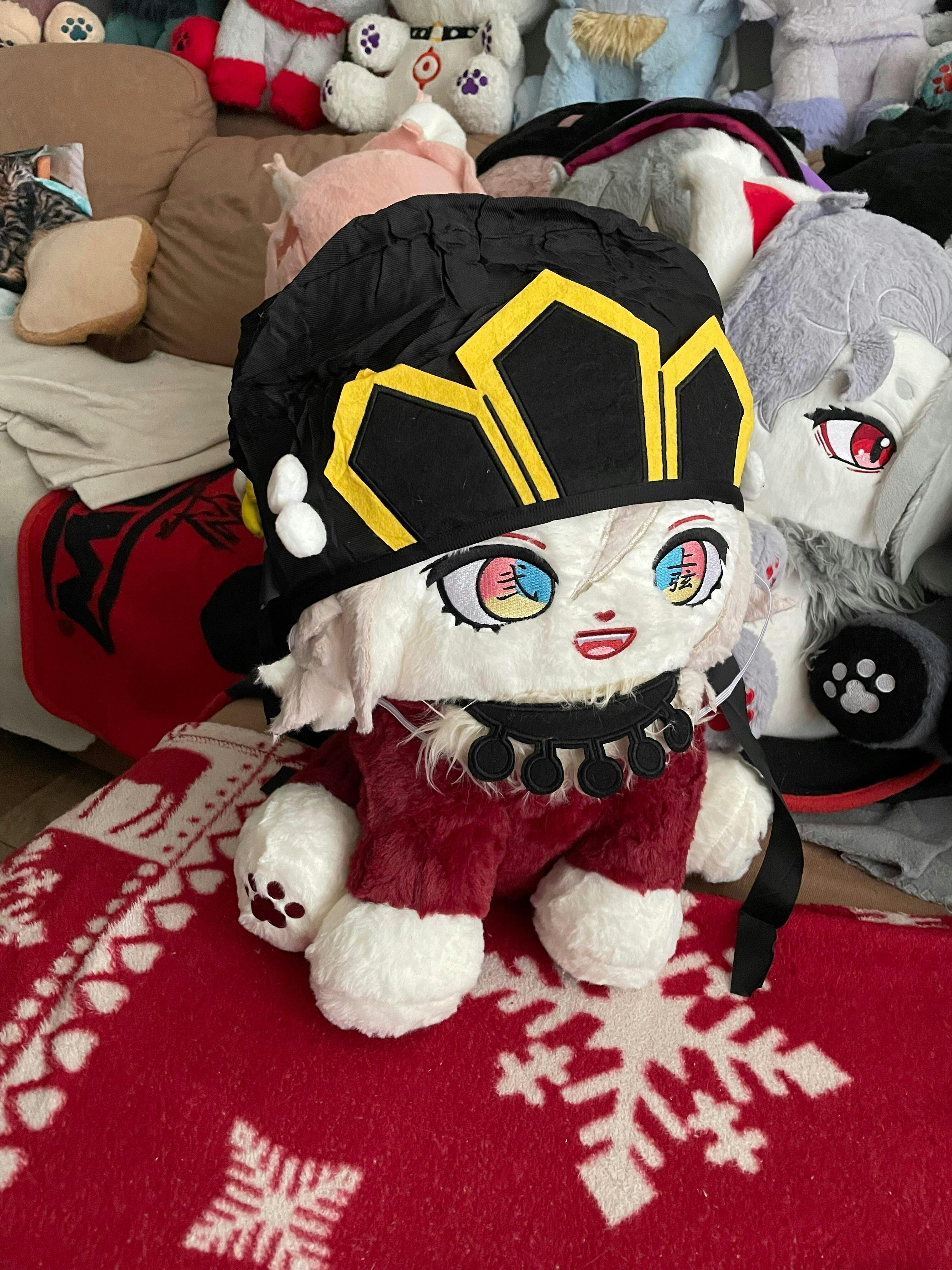 The plush is super soft and super cute. Sits next to my Kokushibou meow on my bed. Love it so much.